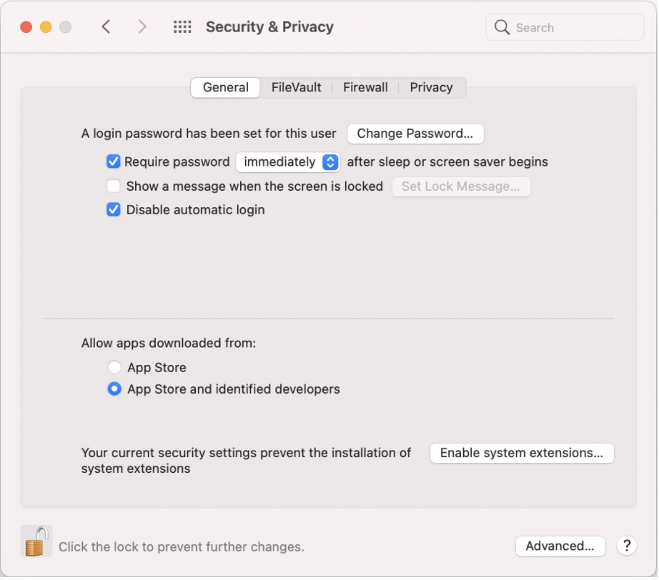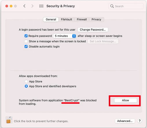 The following message will appear in System Preferences -> Privacy & Security during the installation of Desktop App. To allow the kernel extension in Desktop App. Click the Unlock icon if needed.